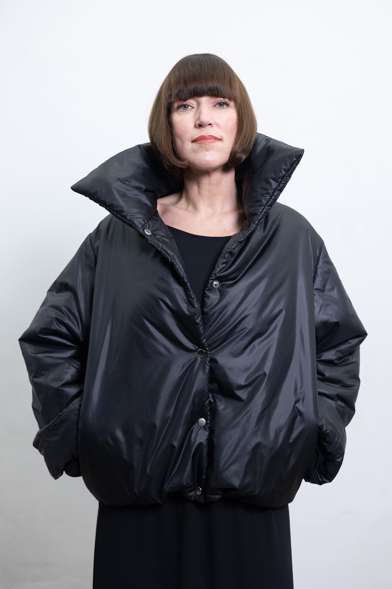 Features relaxed fit, snap fastenings through the front, high-neck collar for added functionality, functional in-seam pockets and lightweight, yet warm polyester padding for extra warmth. Designed for your capsule wardrobe.