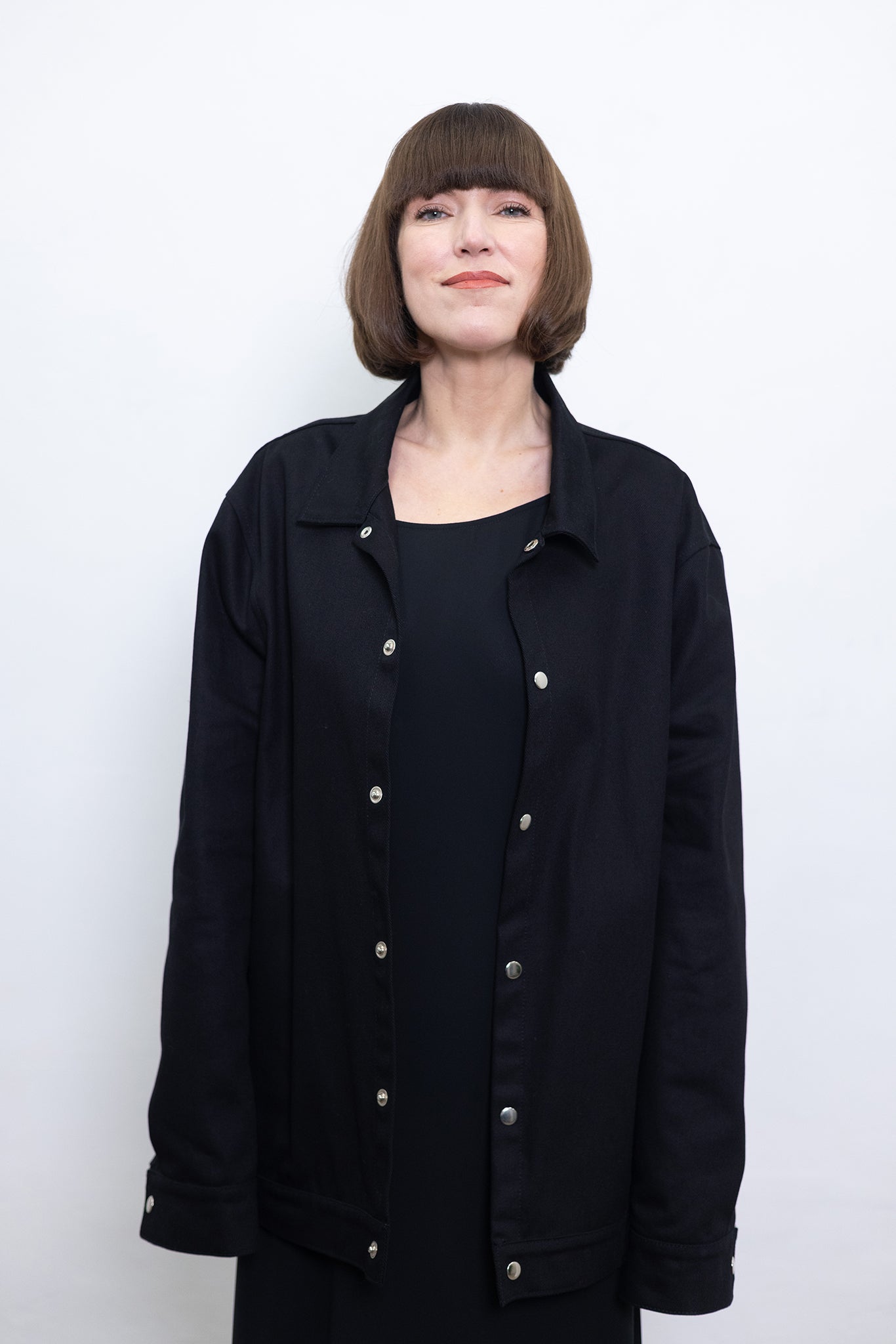 A timeless wardrobe essential designed for both him and her. This unisex black denim jacket features a relaxed, oversized silhouette that drapes effortlessly over the body, offering a refined yet understated look. Crafted from structured denim with a soft touch, it maintains its shape while giving complete ease of movement. The clean lines, minimal details, and elevated cut make it a perfect transitional piece — ideal for layering over everyday basics, trousers, or feminine silhouettes for a bold contrast. An essential capsule item that brings confidence, versatility, and a touch of effortless cool to any outfit.